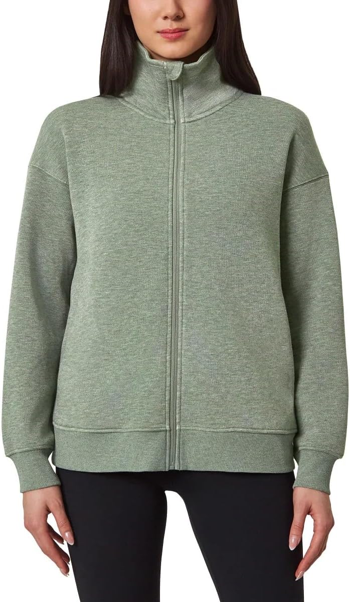 Stay cozy and stylish with this women's full-zip fleece jacket. The oversized design offers a contemporary, relaxed fit that's perfect for layering, while the soft sweatshirt material with fleece lining provides exceptional warmth and comfort. Practical features include convenient side pockets for storing essentials or warming your hands. The ribbed collar, cuffs, and waistband add a classic athletic touch while ensuring a secure fit that keeps the cold out. This versatile jacket works well for casual outings, light workouts, or simply lounging at home. The full-zip front allows for easy on and off, while also letting you adjust ventilation as needed. Whether paired with athletic wear or casual attire, this fleece jacket offers both functionality and style for your everyday wardrobe.