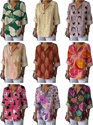 HERCHA Women Shirts Dressy for Leggings Casual Boho Crew Neck 3/4 Sleeve Work Plus Size Tops Stylish Comfy Hawaii Tee