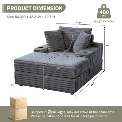 Original: Oversized Chaise Lounge Chair with Storage Ottoman, Upholstered Corduroy Sofa Bed Cloud Couch with 3 Pillows, Single Sleeper Sofa
