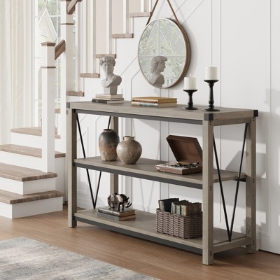 - URL del Producto https://www.target.com/p/farmhouse-long-console-table-47inch-3-tier-entryway-table-with-storage-shelves-rectangular-sofa-table-for-hallway-gray-entry-tabley/-/A-1004963793