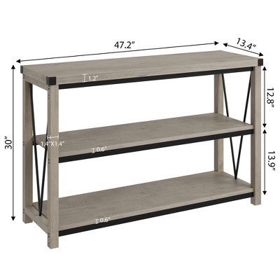 Farmhouse Long Console Table, 47Inch 3-Tier Entryway Table with Storage Shelves, Rectangular Sofa Table for Hallway, Gray Entry Tabley