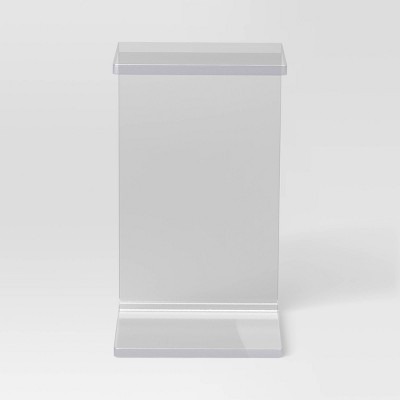 Highlights Clear C-shape table Acrylic construction Rectangular top 24in H x 14in W x 14in D Description Add modern functionality to your home with this C-Shape Acrylic Table from Room Essentials™. Standing at a height of 24 inches, this C table has a clear acrylic construction and features a rectangular silhouette with a smooth tabletop. Easy to slide underneath your sofa, couch or bed, it makes your snacks, coffee, remotes, phones and books easier to reach while lounging and relaxing. Plus, it can be used as an end table, couch table or bedside table without taking up extra space. Room Essentials™: Everyday Value Detailed Dimensions: Overall Width: 14 inches Overall Height: 24 inches Overall Depth: 14 inches Overall thickness: 18mm